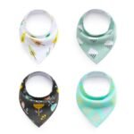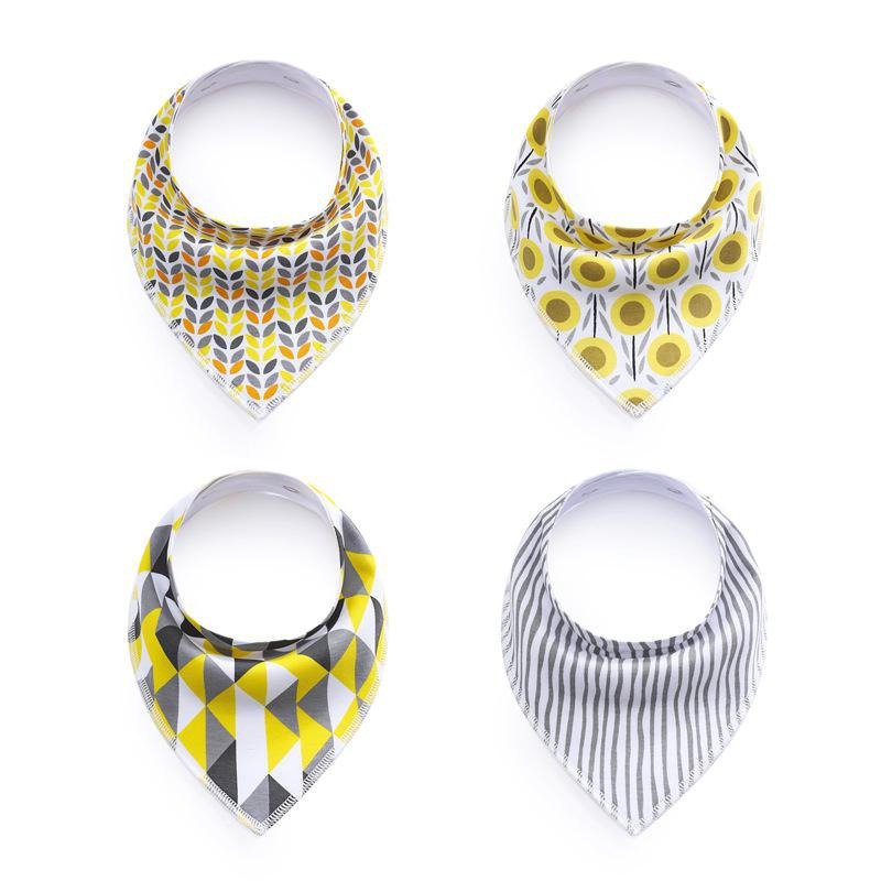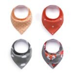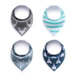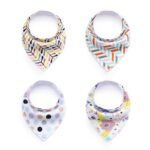 Pack de 4 babero tipo bandana de algodón super absorbente. Tienen 3 niveles de broches que acompañan el crecimiento. Son re duraderos y super coquetos!! Divinos también para regalar!